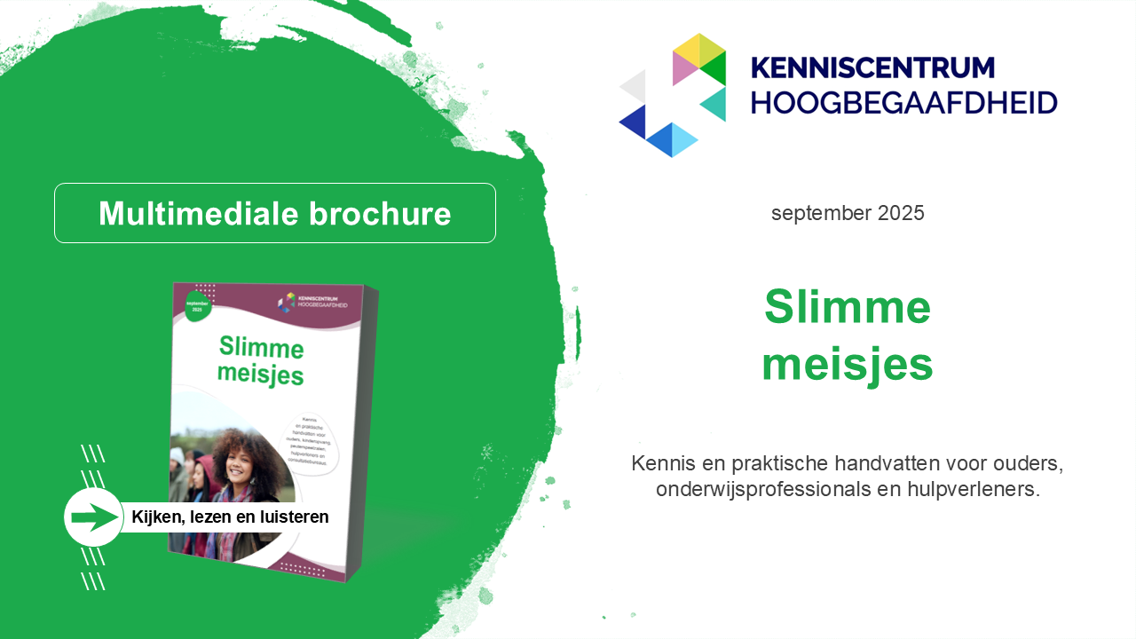 In deze brochure is nog meer te vinden. Zo interviewden we weer verschillende leraren en onderwijsbegeleiders over de manier waarop zij in hun dagelijkse praktijk meisjes met kenmerken van begaafdheid herkennen, lesgeven en uitdagen. De interviews met Maaike Theunissen, Evelien Okkinga, Stefanie Idzinga-Rust en Jorien Dubbelman geven weer prachtige inkijkjes in de praktijk. Als redactie hopen we dat jij als je deze brochure leest, de interviews hoort en onze webinars bekijkt, geïnspireerd raakt om dingen in je eigen groep te proberen die activiteiten voor al je leerlingen toegankelijk maken. Wie weet herken je nog veel meer leerlingen met kenmerken van begaafdheid die je eerder nog niet zo had gezien.