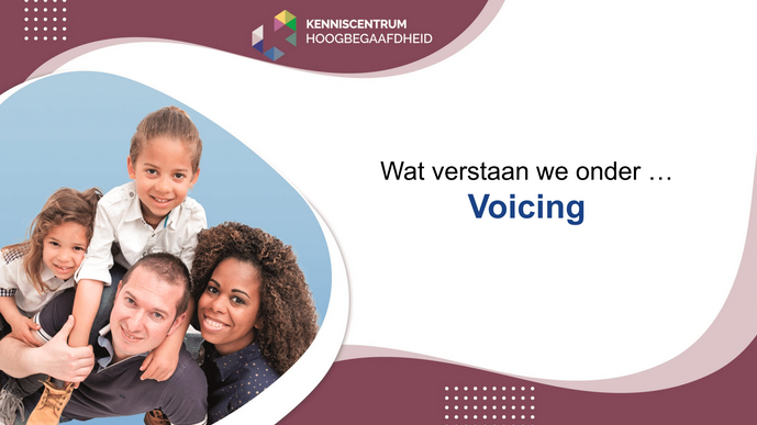 In het onderwijs en coaching verwijst voicing naar het proces waarbij een leerling, student of medewerker zijn gedachten, gevoelens, meningen en behoeften duidelijk uitspreekt of verwoordt. Het gaat erom dat iemand zich gehoord en erkend voelt en actief deelneemt aan gesprekken over zijn eigen leren, ontwikkeling of situatie. Voicing bevordert zelfreflectie, zelfsturing en betrokkenheid, omdat het de persoon in staat stelt zijn perspectief te delen en invloed uit te oefenen op beslissingen die hem of haar aangaan. Het kan zowel verbaal als schriftelijk plaatsvinden en wordt vaak ingezet in co-creatie, feedback- en coachingsgesprekken.
