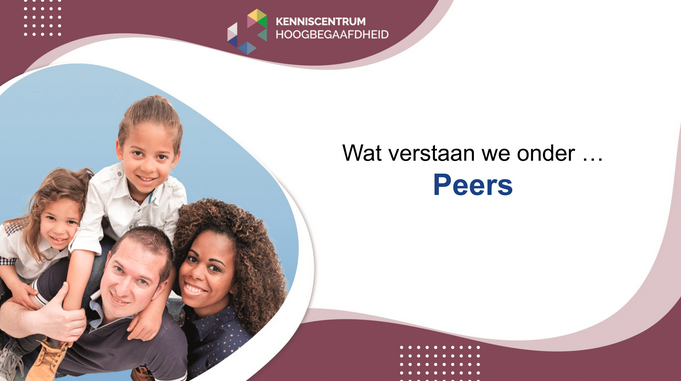 Peers zijn leeftijdsgenoten of mensen die zich in een vergelijkbare sociale of ontwikkelingsgroep bevinden. Ze spelen een belangrijke rol in hoe iemand zich sociaal, emotioneel en cognitief ontwikkelt. Interacties met peers beïnvloeden gedrag, attitudes en normen, zowel positief als negatief. Zo kunnen peers ondersteuning bieden bij leren, bij het ontwikkelen van vriendschappen en bij het versterken van sociale vaardigheden maar peers kunnen ook zorgen voor groepsdruk of negatief gedrag aanmoedigen. Peers bevinden zich vaak in dezelfde klas, sportteam of werkcontext, waardoor ze een directe en herkenbare invloed hebben. Ze vormen zo een belangrijk netwerk dat gedrag en ontwikkeling mede stuurt.