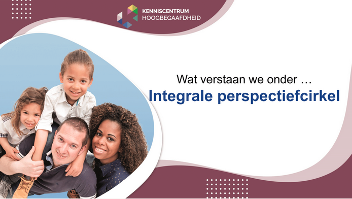 De integrale perspectiefcirkel onderwijs en zorg is een visueel hulpmiddel waarbij de leerling altijd centraal staat. Het brengt overzichtelijk in beeld wie er rondom de leerling betrokken zijn, wat hun rol is en hoe zij met elkaar verbonden zijn. Dit kunnen bijvoorbeeld leraren, ouders, mentoren, zorgcoördinatoren, jeugdhulpverleners, leerplichtambtenaren of andere relevante personen en instanties zijn. Door deze visualisatie kunnen professionals beter samenwerken en samen duidelijk maken hoe ze de leerling ondersteunen, zodat de zorg en begeleiding goed op elkaar aansluiten. Bijvoorbeeld krijgt een hoogbegaafd kind met faalangst niet alleen uitdagende leerstof, maar ook begeleiding bij emoties en sociale vaardigheden. Zo zorgt de integrale perspectiefcirkel ervoor dat de leerling als geheel wordt gezien en optimaal kan groeien.