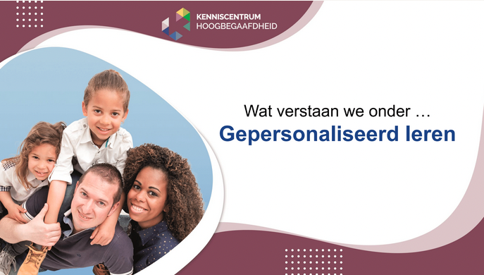 Gepersonaliseerd leren vorm van onderwijs waarbij het aanbod wordt afgestemd op de individuele behoeften, interesses en mogelijkheden van elke leerling. In plaats van één standaardprogramma volgen leerlingen een traject dat bij hen past, met aangepaste taken, tempo en werkvormen. Leerlingen hebben vaak inspraak in wat, hoe en wanneer ze leren, waardoor ze actiever en gemotiveerder betrokken zijn. Het doel is dat leerlingen hun talenten optimaal ontwikkelen, zelfvertrouwen krijgen en zelfstandig leren denken en handelen, passend bij hun persoonlijke leerprofiel.
