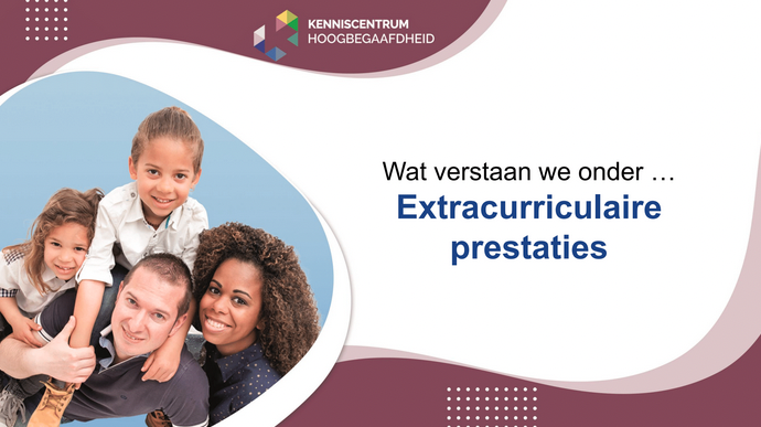 Extracurriculaire prestaties zijn activiteiten en prestaties van leerlingen of studenten die plaatsvinden buiten het reguliere school- of studieprogramma. Ze omvatten bijvoorbeeld sport, kunst, maatschappelijke projecten, vrijwilligerswerk of deelname aan competities en bijzondere projecten. Hoewel ze niet verplicht zijn voor het behalen van een diploma, dragen deze activiteiten bij aan de brede ontwikkeling van een leerling door het ontwikkelen van sociale, creatieve en organisatorische vaardigheden. Extracurriculaire prestaties worden vaak gewaardeerd bij toelating tot honoursprogramma’s, beurzen of vervolgstudies omdat ze inzet, talent en initiatief laten zien. Ze vormen een waardevolle aanvulling op het formele curriculum en stimuleren persoonlijke groei en competentieontwikkeling.