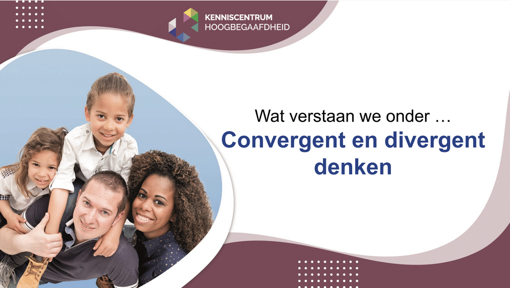 Convergent en divergent denken zijn twee complementaire manieren van denken. Bij convergent denken zoekt men gericht naar één juiste oplossing, met logica en analyse als leidraad. Dit type denken is efficiënt en toepasbaar bij problemen met duidelijke antwoorden, zoals wiskundige vraagstukken. Divergent denken daarentegen draait om creativiteit en verbeelding: het verkennen van meerdere mogelijkheden en het genereren van nieuwe ideeën. Deze vorm van denken is essentieel bij brainstormen en innovatie. Samen vormen ze een krachtig duo: eerst divergent om ideeën te verkennen, daarna convergent om de beste oplossing te kiezen en in praktijk te brengen.