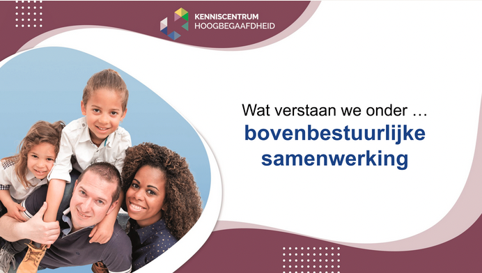 Bovenbestuurlijke samenwerking in het onderwijs verwijst naar samenwerking tussen verschillende onderwijsbesturen of andere overkoepelende organisaties, vaak op regionaal of landelijk niveau. Het doel is krachten bundelen, expertise delen en efficiënter en effectiever onderwijs mogelijk maken voor een grotere groep leerlingen. Dit kan bijvoorbeeld gaan om gezamenlijke aanpak voor (hoog)begaafde leerlingen, speciale ondersteuningsvoorzieningen, professionalisering van personeel of het ontwikkelen van innovatief onderwijsbeleid. Bovenbestuurlijke samenwerking zorgt ervoor dat scholen niet ieder afzonderlijk alle voorzieningen hoeven te bieden, maar dat leerlingen en scholen profiteren van gedeelde kennis, middelen en voorzieningen.