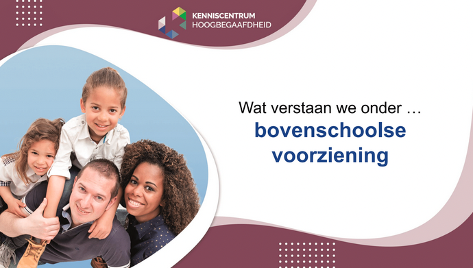 Een bovenschoolse voorziening in het onderwijs aan hoogbegaafde leerlingen is een speciale voorziening of programma dat meerdere scholen bedient, in plaats van één enkele school. Deze voorzieningen zijn bedoeld om hoogbegaafde leerlingen extra uitdaging, verdieping of versnelling te bieden die op hun eigen school niet mogelijk is. Voorbeelden zijn plusklassen, speciale onderzoeksprogramma’s, talentenprogramma’s of clusteronderwijs. Het doel is dat leerlingen hun cognitieve, creatieve of sociale talenten optimaal kunnen ontwikkelen, terwijl de reguliere schoolomgeving vaak te weinig mogelijkheden biedt om aan hun specifieke onderwijsbehoeften te voldoen.
