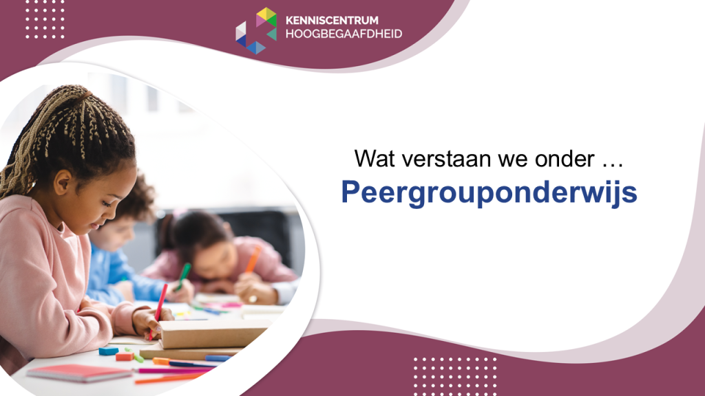 Het woord peergroep verwijst naar een groepssamenstelling waarin leerlingen van een vergelijkbaar ontwikkelingsniveau zijn geplaatst zonder dat dit