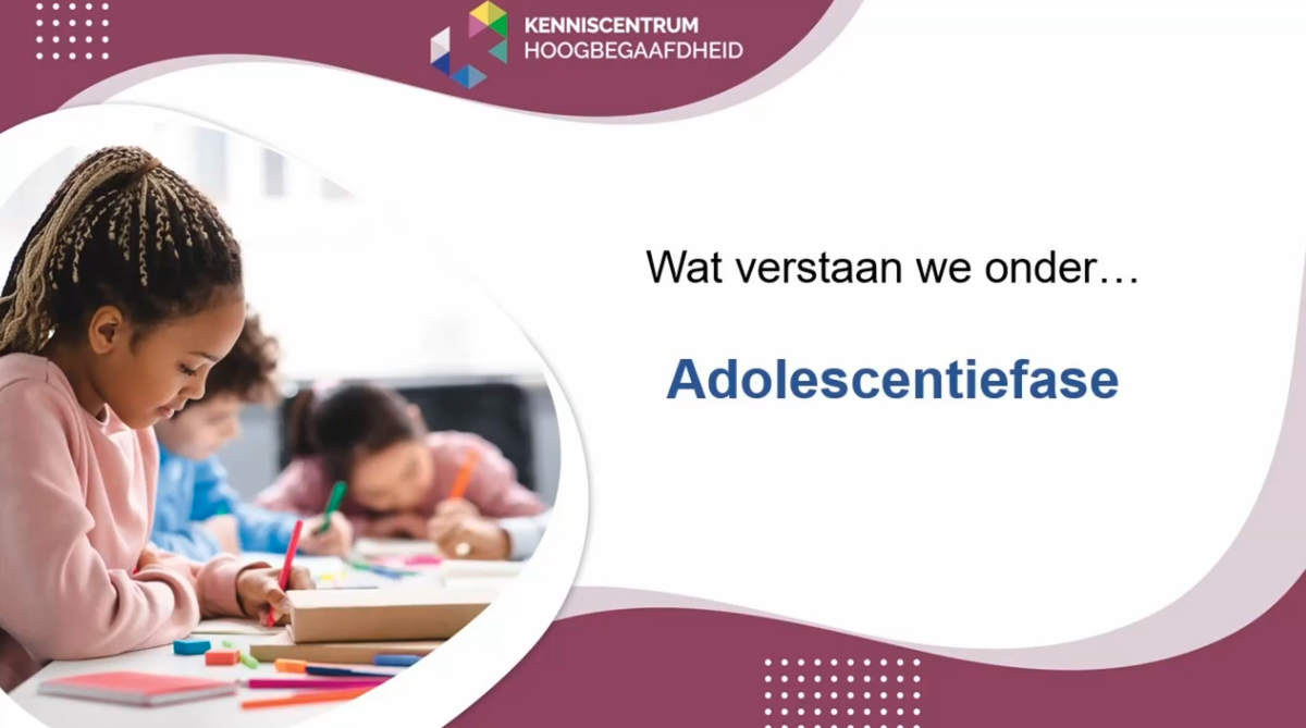 De adolescentiefase is de periode tussen kindertijd en volwassenheid, meestal van ongeveer 12 tot 25 jaar, waarin lichamelijke, geestelijke en sociale veranderingen plaatsvinden.